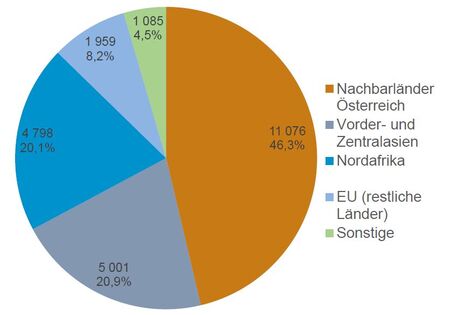 Fast die Hälfte aller Tiere gingen in die österreichischen Nachbarländer (11.076 Stk.), es folgt mit 5.000 exportierten Tieren (21%) der vorder- und zentralasiatische Markt sowie Nordafrika, insbesondere Algerien, mit 4.800 Tieren (20 %).