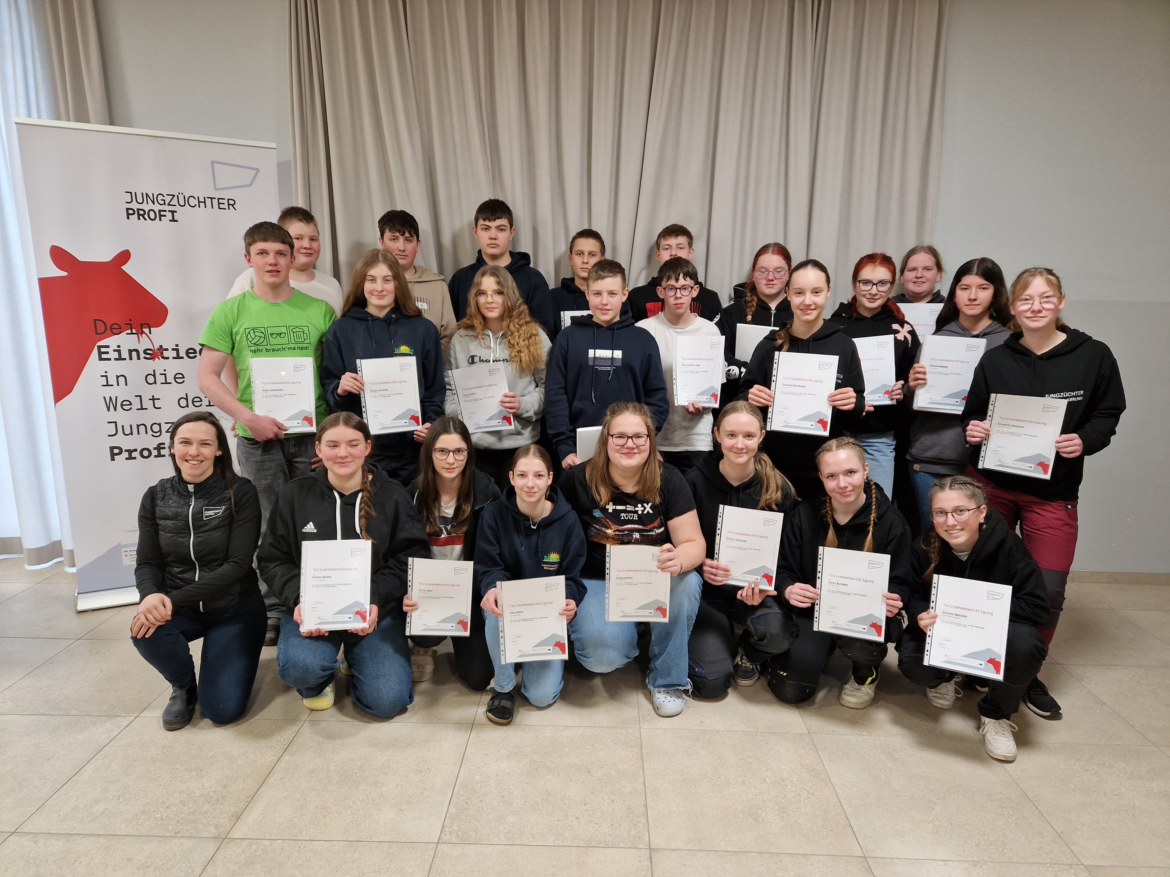 18 Schüler:innen der LFS Edelhof und 5 Schüler:innen der LFS Hollabrun nahmen erfolgreich daran teil. Die Schüler:innen, die zum Großteil von einem Rinderbetrieb kommen, waren sehr informiert und interessiert und konnten ihr Wissen in den Bereichen Tiergesundheit, Fütterung sowie Schauvorbereitung weiter vertiefen.